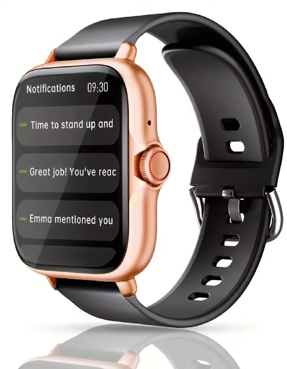 Das große Display sorgt dafür, dass alle Inhalte gut lesbar sind, während das moderne Design die Uhr zu einem stilvollen Accessoire macht. Gleichzeitig bietet das weiche Silikonarmband einen angenehmen Sitz – auch bei längerer Nutzung.